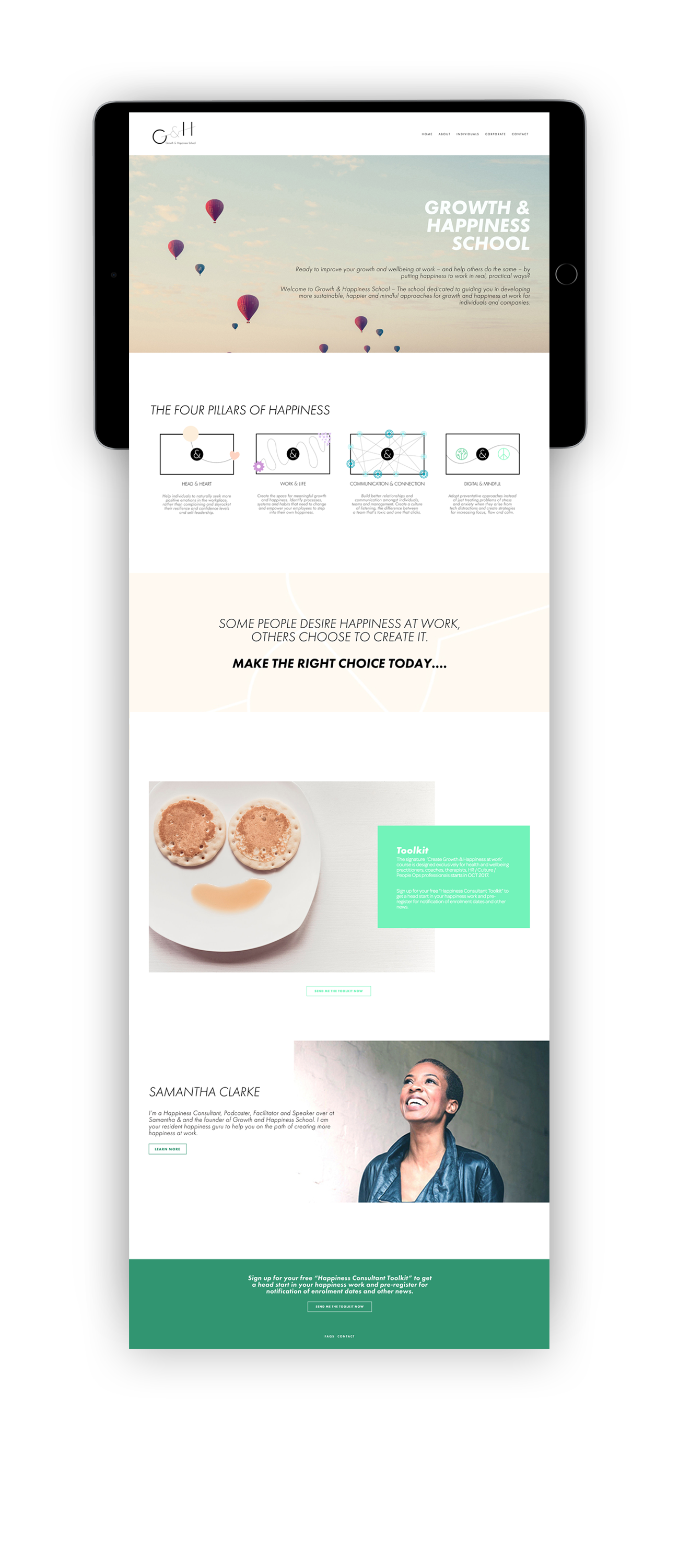 The Growth & Happiness School helps individuals and corporates improve their own and their employees' wellbeing, resilience and development at work through an online course run by happiness consultant Samantha Clarke.